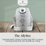 The AllyBee is a bucket-style bag with a cinch closure and unique strap that can be worn as both a shoulder bag and a sling. There are two adjustable strap sizes to choose from; small/medium or large/X-large.